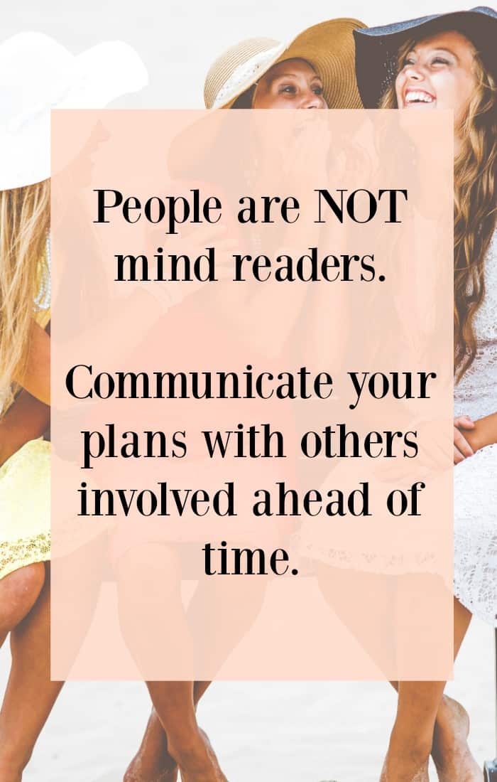 Most people are not mind readers – Communicate plans ahead of time!