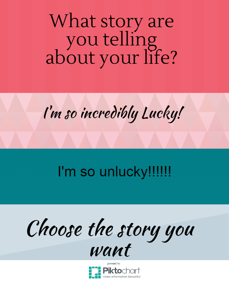 So how will you answer that question ~ Are you Lucky or UNlucky? What story are you telling yourself and others? Is it the story you want to be real in your life? If it’s not then it’s time to get yourself a new story and that’s exactly what I’m doing.