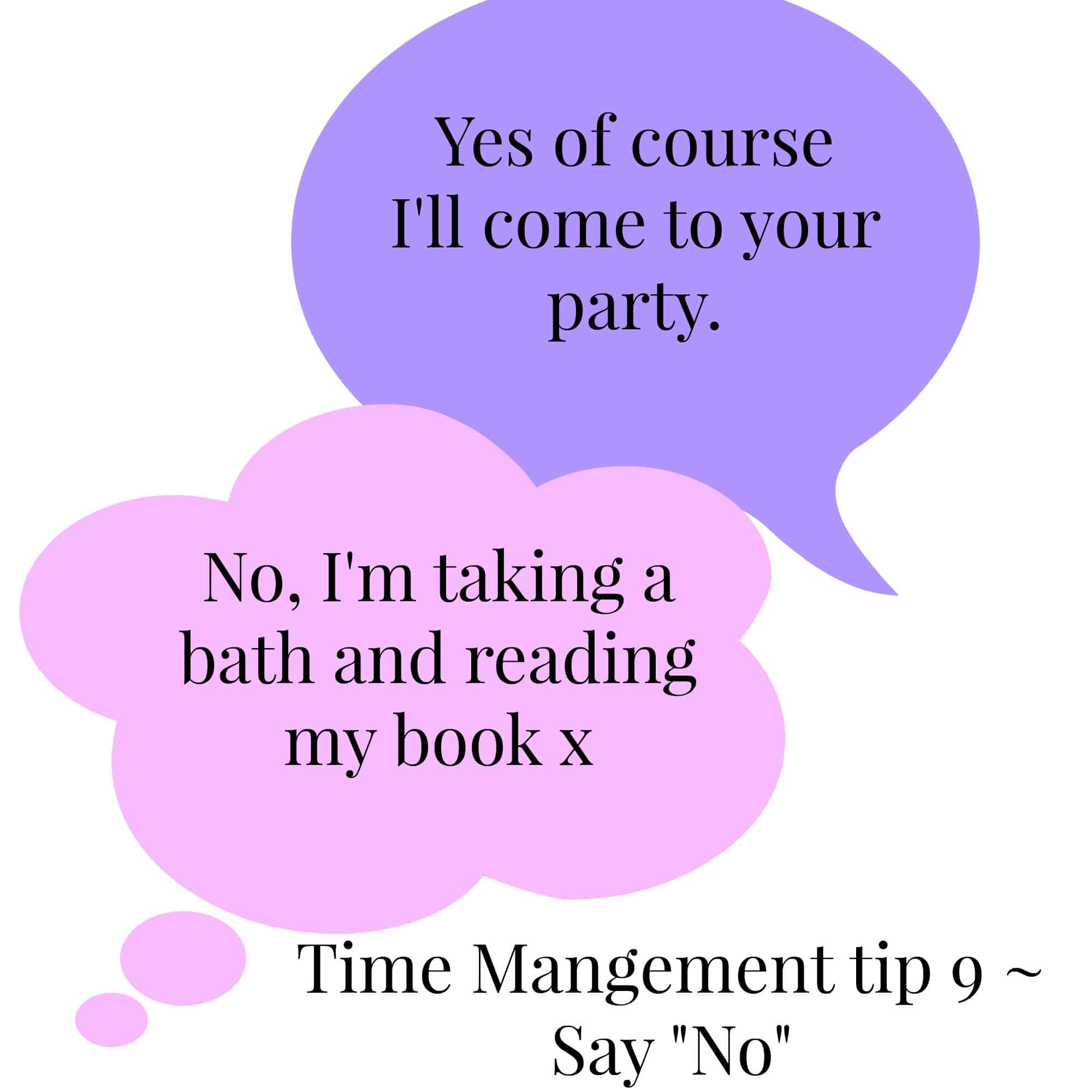 Now I have to admit, I’ve never had too much of a problem saying “No” but I know a lot of you do and if you’re looking at the image to the right and thinking but I like going to parties and I don’t want to stay in and read a book, that’s great. My point to you is to make sure that you’re not saying “Yes.” when you really want to say “No.”