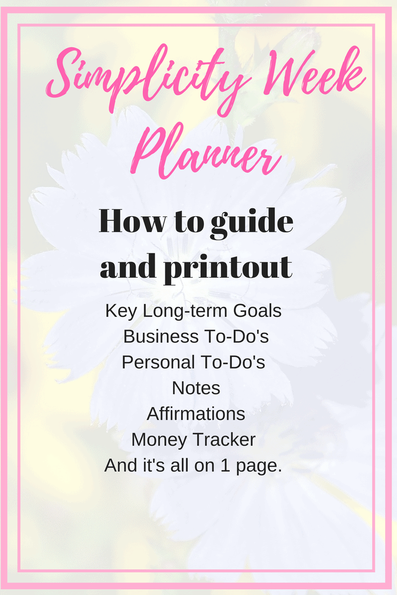 This Simplicity Planner is a weekly printout to really help you focus on what’s most important. Sunday’s are definitely my planning day for the week ahead where I get clear about my goals and set out what I need to do, to focus on to achieve my goals.