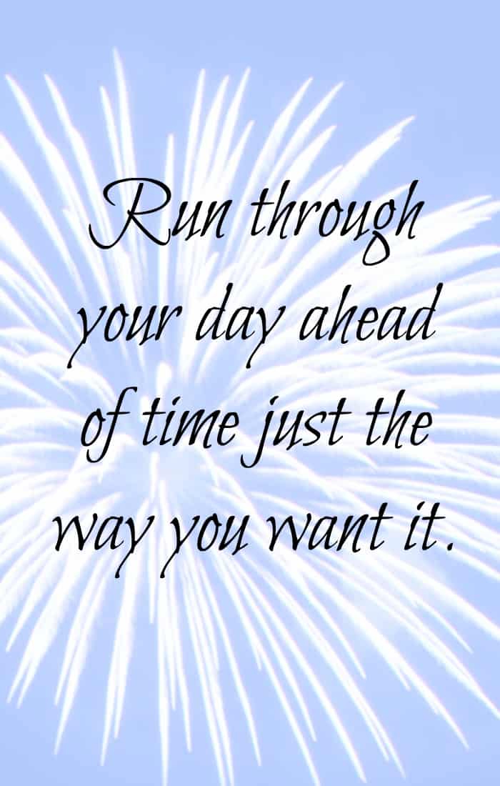 When you take the time to visualize your day running smoothly and you having the time you want, you send a message out into the universe and the law of attraction works to match your visualization.